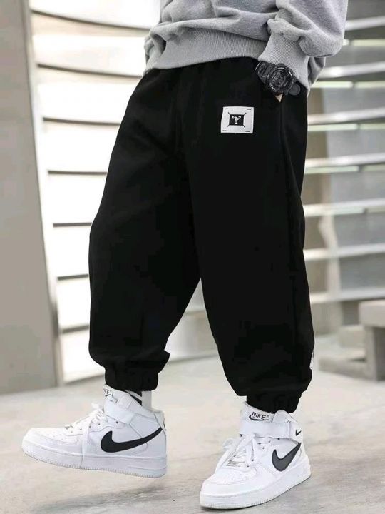 天猫在售款600件左右高品质中大童潮牌春秋款棉质束脚卫裤,单款两色,码数120-170,独立包装带吊牌