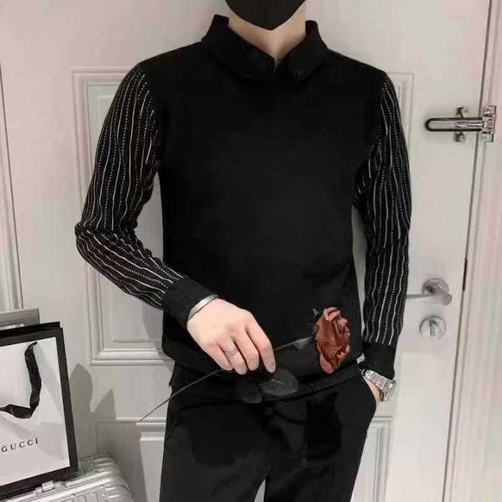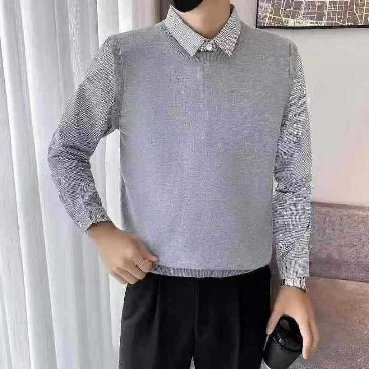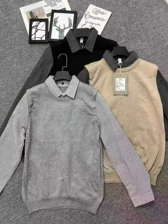 ☕️男装假两件毛衣488件全清13.8元 分货14.8元,码数M到3XL 单款3色,独立包装。男士春秋款新款男装衣服商务休闲男款衬衫领针织衫