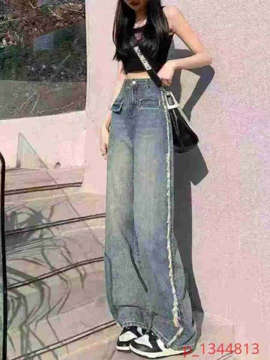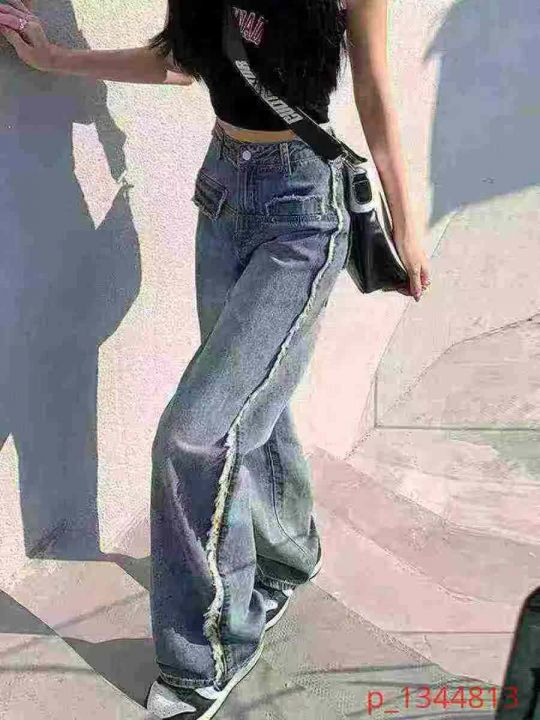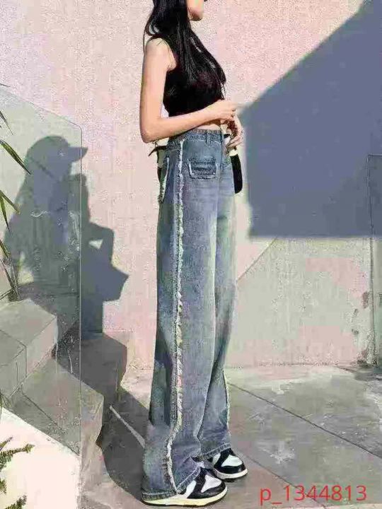 设计感毛边牛仔裤女春秋新款,高腰显瘦百搭阔腿直筒拖地裤,独立包装,数量167条,XS-2XL码,款号8318-3,m码裤长110CM(0902#4) _@_@