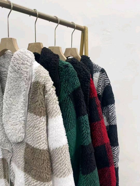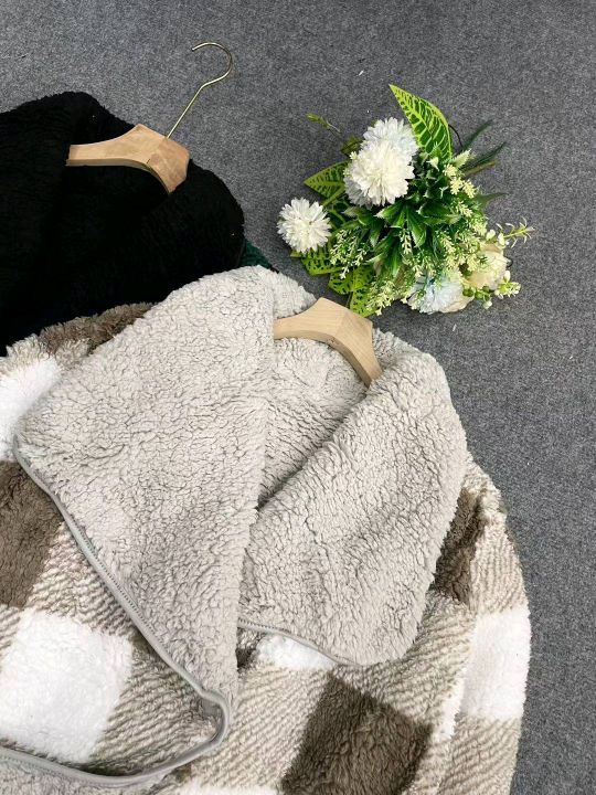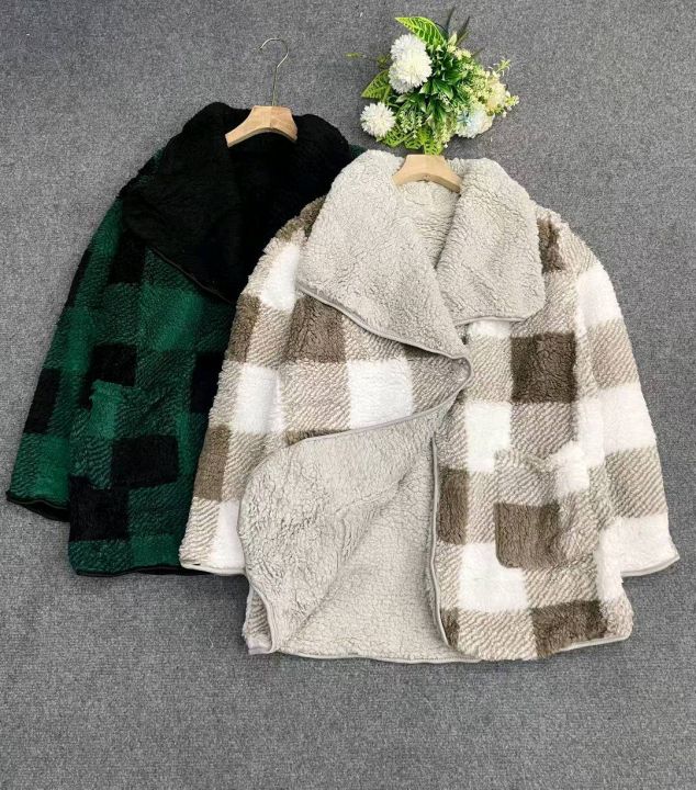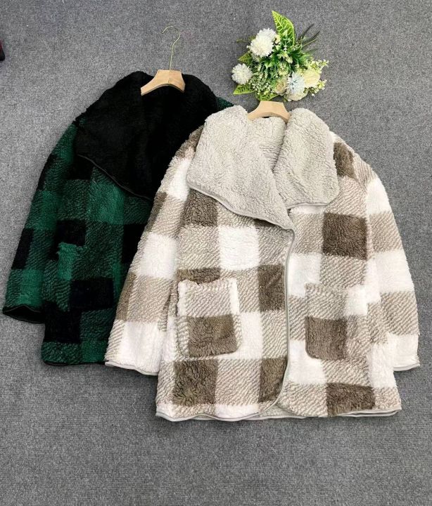 399件大翻领格纹休闲毛绒外套。图片款,面料柔软舒适...