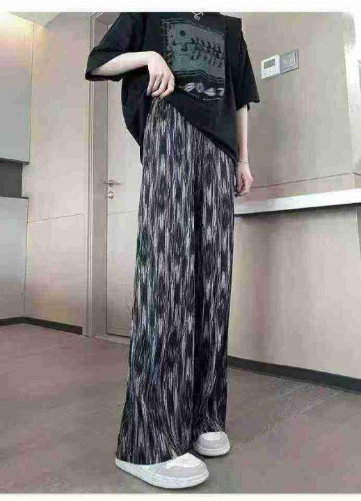 冰凉感直筒冰丝阔腿裤女夏季薄款休闲防蚊显瘦垂感扎染裤子,独立包装,码数M-2XL,数量496条,M码裤长90厘米,货号0915#54