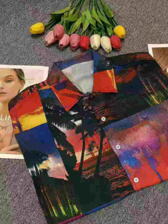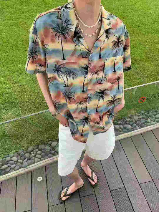 捡漏全清:6.8一件港风复古设计感海边印花椰树男士衬...