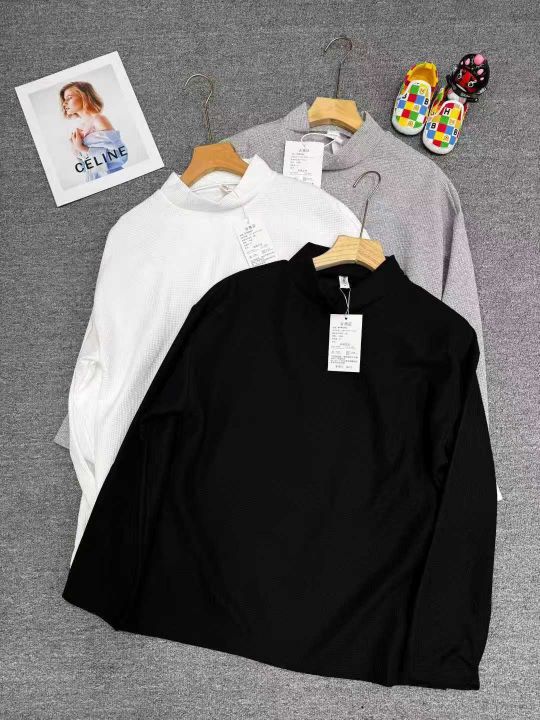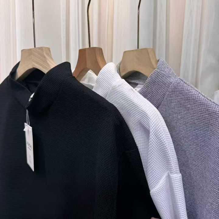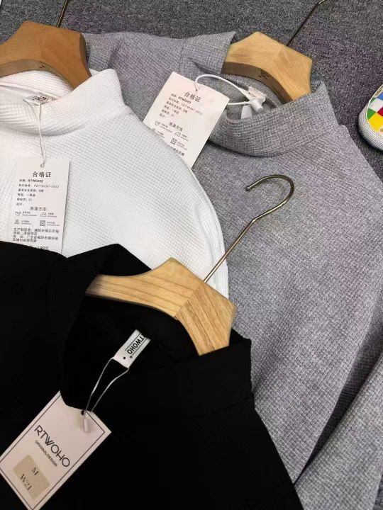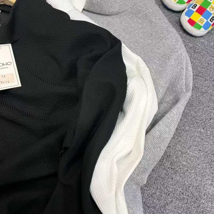 1075件,华夫格春秋长袖T恤男女潮牌纯色半高领打底衫美式卫衣,独立包装,码数:M-3XL,全清4.8元,分货+1