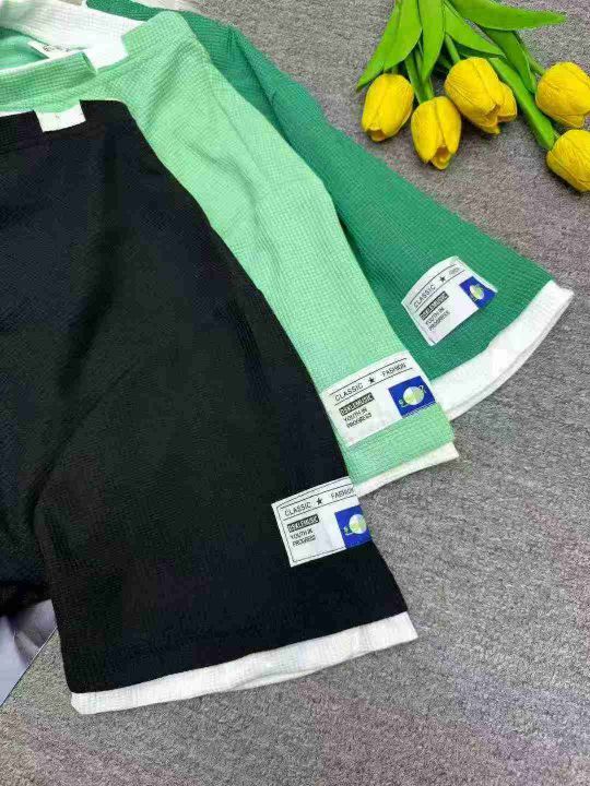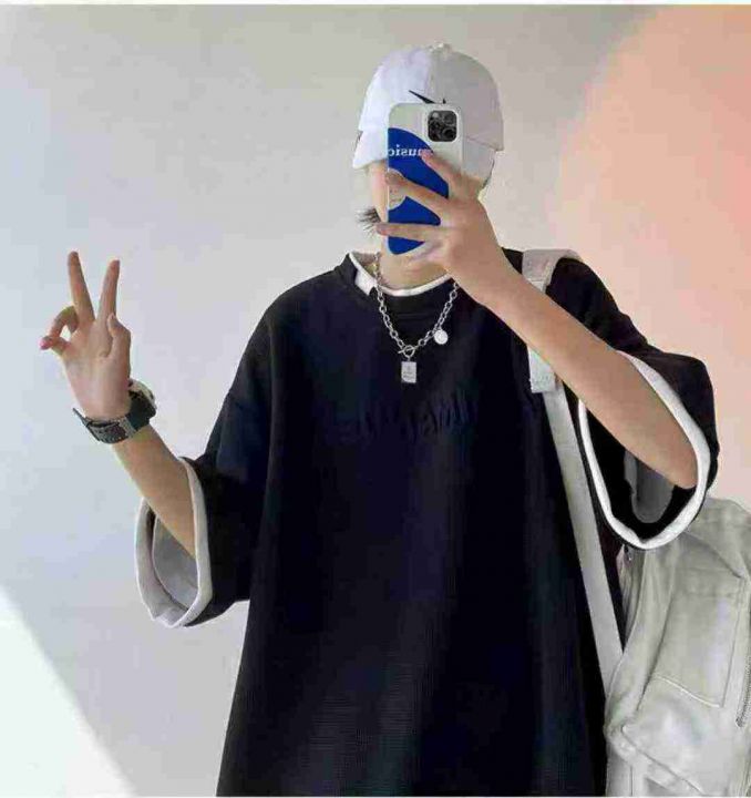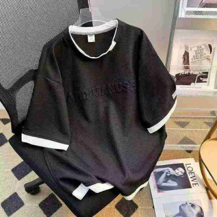 假两件华夫格短袖T恤男夏季潮牌百搭ins休闲上衣港风半袖体恤,独立包装,码数0-3码,201件,黑色占九成多,货号0915#56