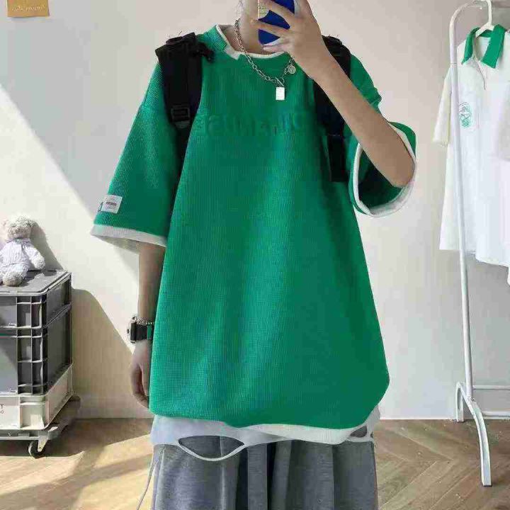 全清价5.9元假两件华夫格短袖T恤男夏季潮牌百搭ins休...