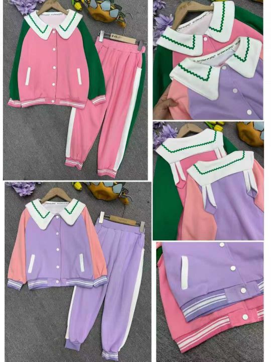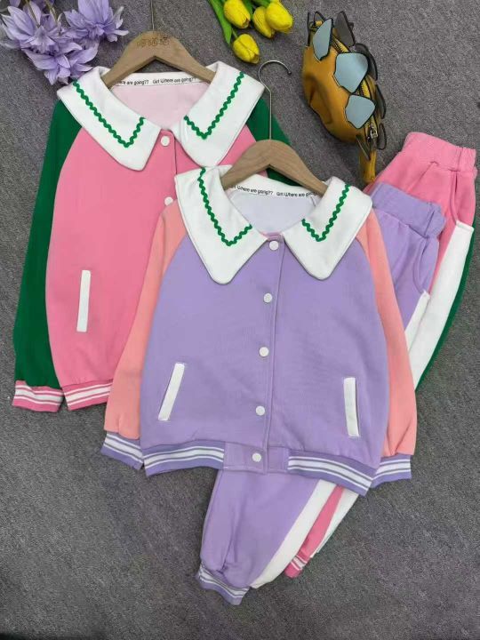 女童秋装长袖棒球服女童休闲运动时髦洋套装,独立包装,两个整款,码数90-160,图一占比多,图二款只有27套(130-140码),分货加1,(货号0913#42)