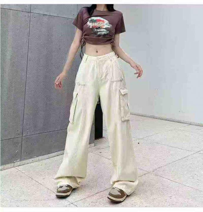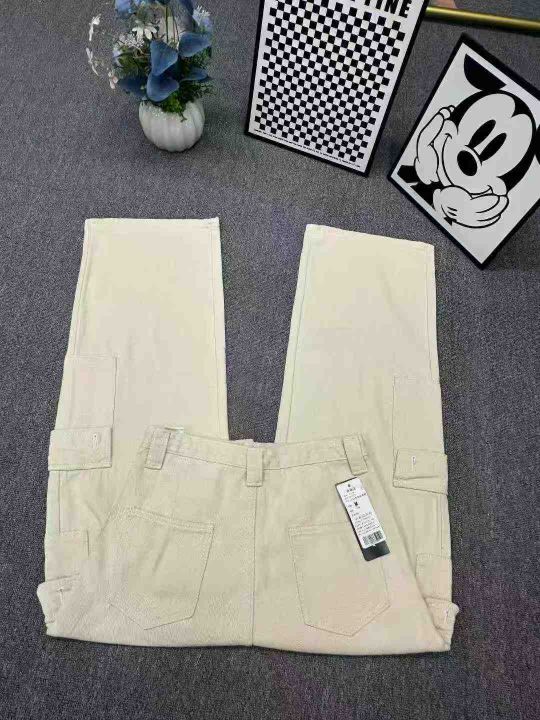 高品质女装多口袋工装牛仔直筒阔腿裤,独立包装带吊牌...