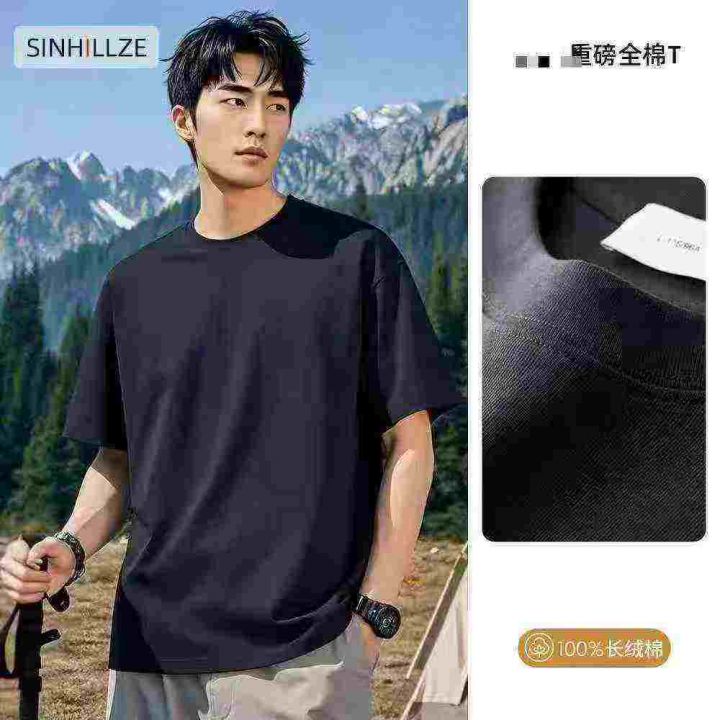 ☕️纯棉210克纯色短袖t恤男宽松纯棉上衣服男士运动半...