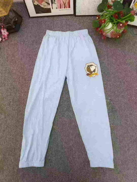 夏季薄款纯棉束脚长裤,数量500件左右,尺码110--160,logo有很多,六个色,光版的少量,独立包装,大货干净整洁