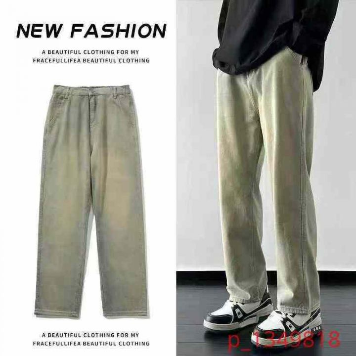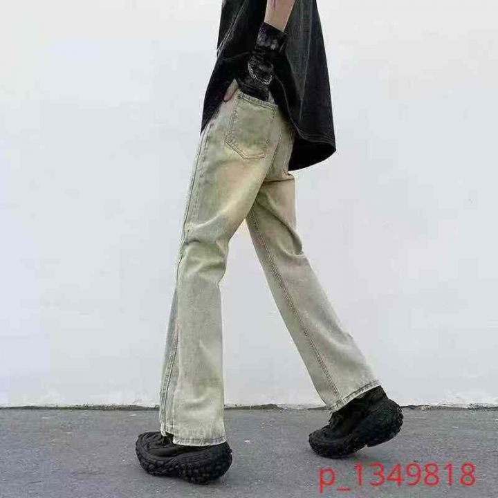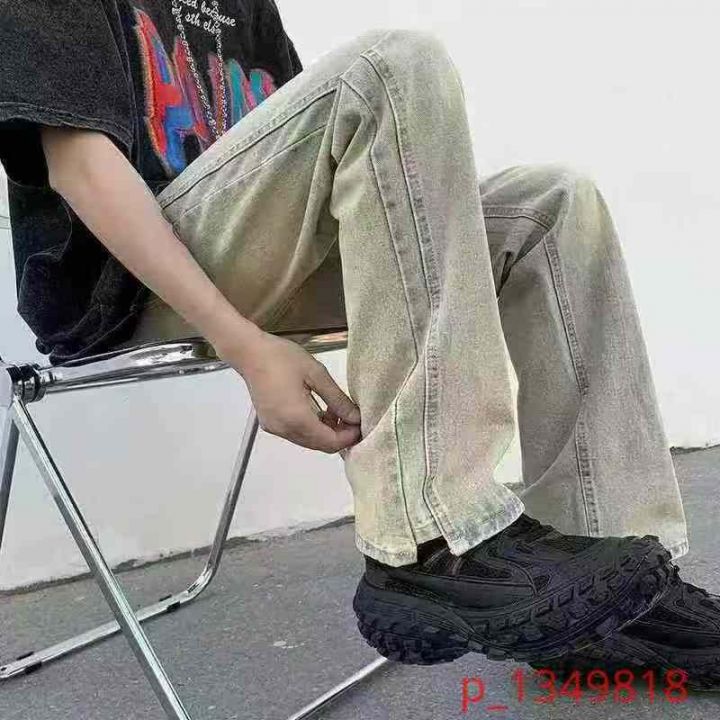 美式高街vibe裤子复古黄泥牛仔裤男款春秋季宽松直筒垂感微喇叭裤,数量231件,码数2xl-3xl,独立包装吊牌,全清10.8元 _@_@