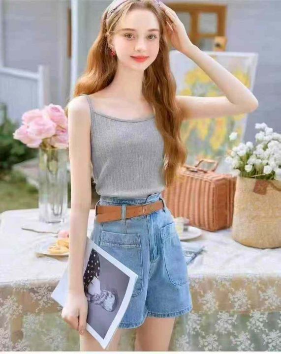 夏季新款冰爽简约性感露腰辣妹短款吊带背心.单款两色...