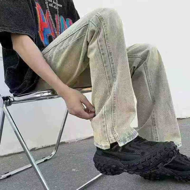 美式高街vibe裤子复古黄泥牛仔裤男款春秋季宽松直筒垂感微喇叭裤,数量231件,码数2xl-3xl,独立包装吊牌,全清10.8元