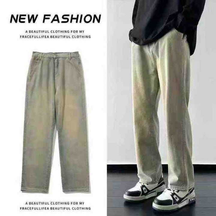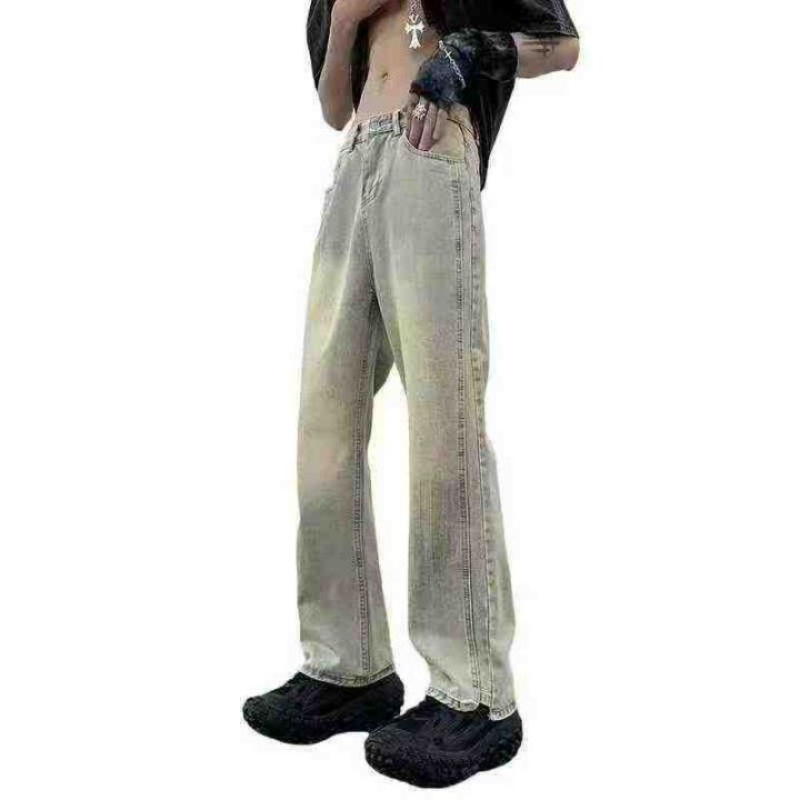 美式高街vibe裤子复古黄泥牛仔裤男款春秋季宽松直筒垂...