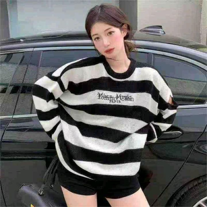 全清:12.8一件韩版条纹字母刺绣露肩男女同款针织上衣...