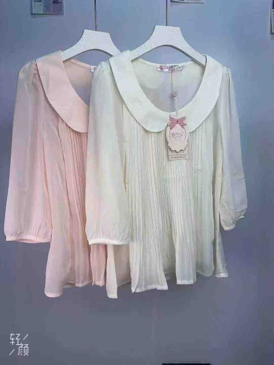 韩版娃娃领雪纺衫宽松七分袖上衣,独立包装,全部有吊牌,码数S-M-L ,两个颜色135件.全清5.8