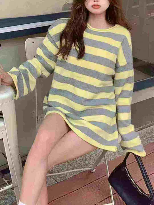 5.9元清秋季新款宽松长款条纹针织衫,数量2980件,单...