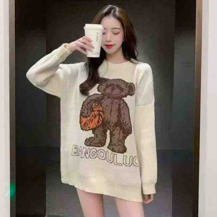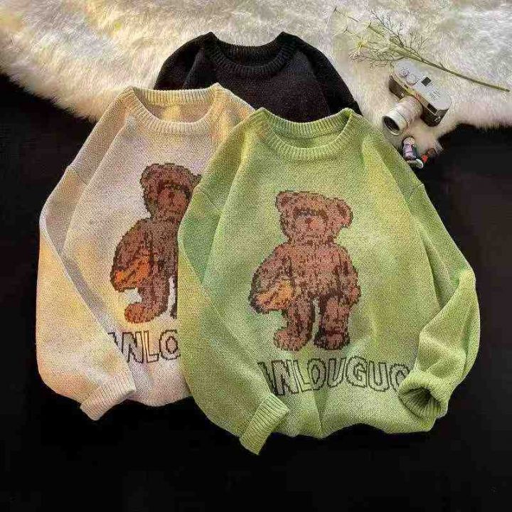 秋冬新款品牌原单男女同款宽松慵懒风熊熊卡通套头毛衣,独立包装,1-4码相当于码数M--2XL码,180件