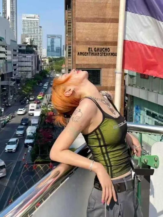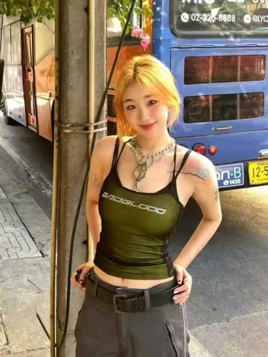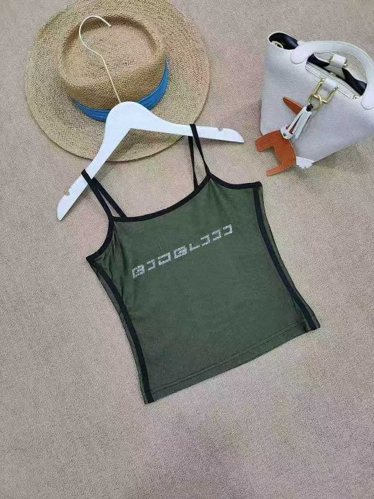 [月亮]:美式荧光绿烫钻辣妹吊带