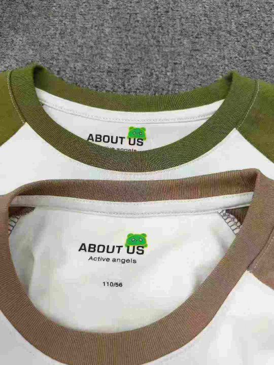 童装春秋装插肩袖撞色上衣洋气长袖,数量2000件左右,尺码110--160,胸前可爱小熊logo,面料柔软亲肤,后领包边,独立包装带吊牌