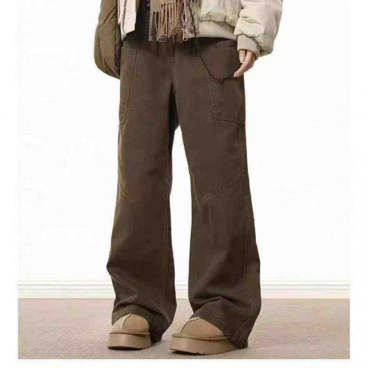 复古美拉德棕色工装裤男女美式潮牌cleanfit咖啡色直筒...
