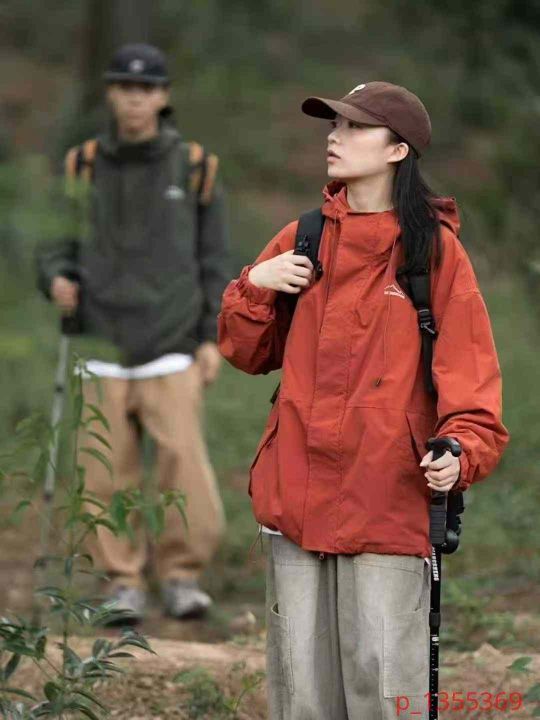 户外登山运动机能风双层连帽男女款冲锋衣外套二个整款...