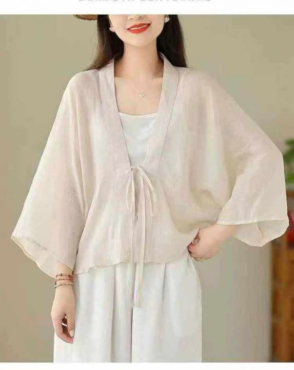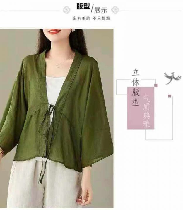 全清价5.9夏季文艺大码宽松蝙蝠袖苎麻开衫轻薄短外套...
