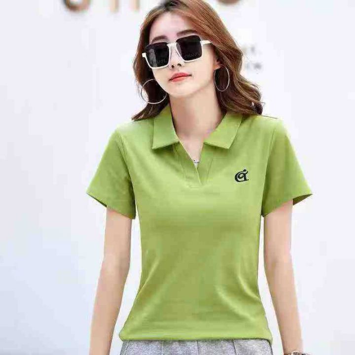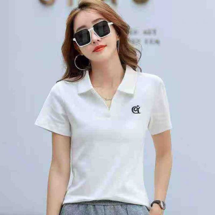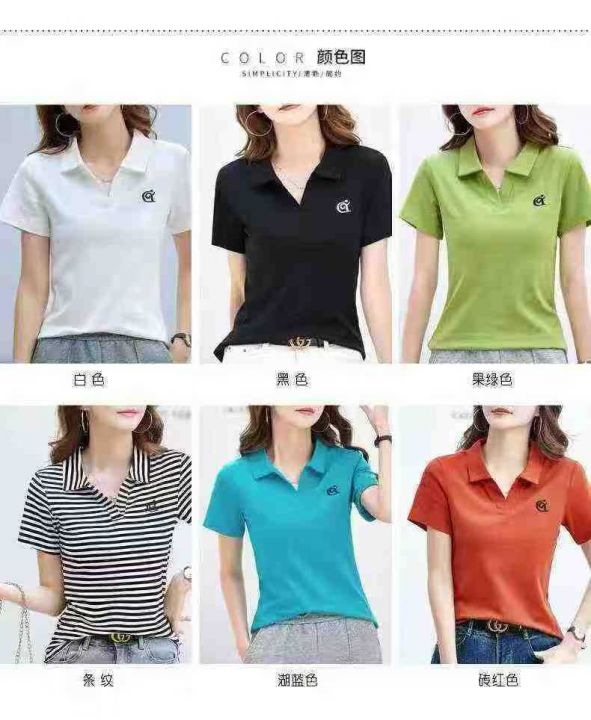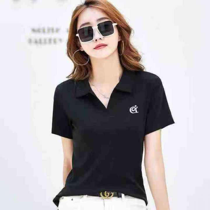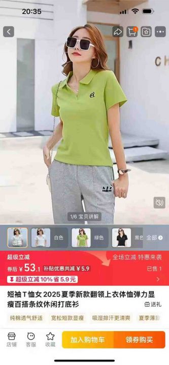980件短袖T恤女2025夏季新款翻领上衣体恤弹力显瘦百搭...