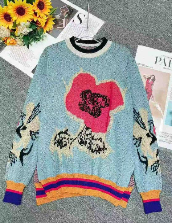 秋冬新款法式高级感复古宽松大码慵懒风提花包芯纱套头...