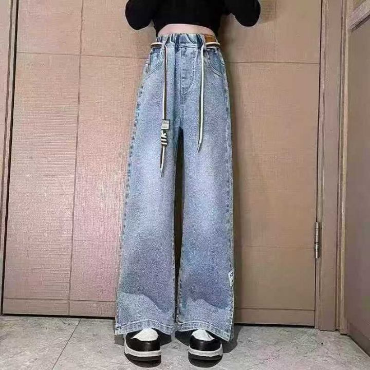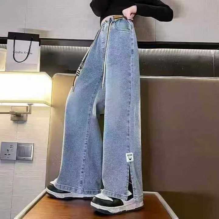 秋季新款网红爆款中大童女童洗水面料牛仔阔腿裤,独立...