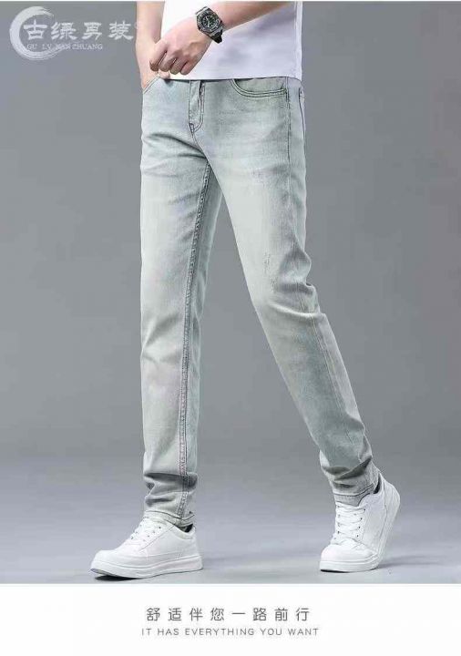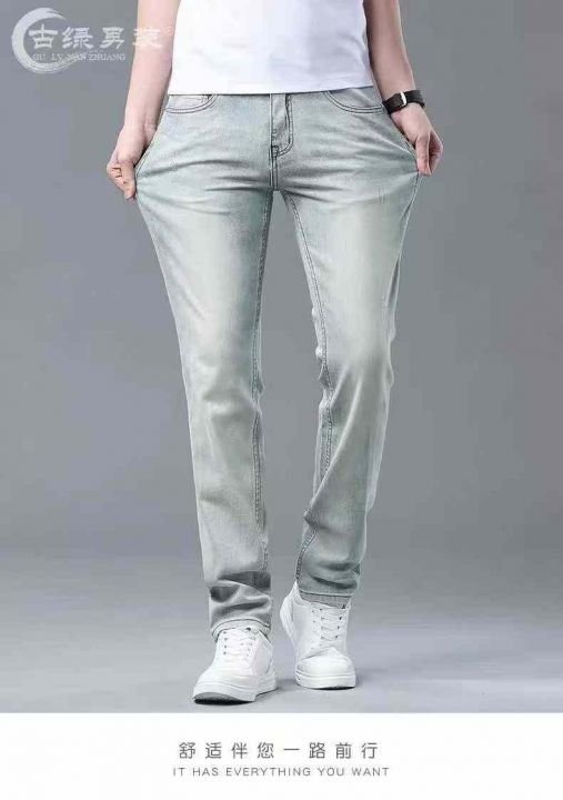 秋季新款高弹力洗水棉男士修身复古浅色牛仔裤,独立包...