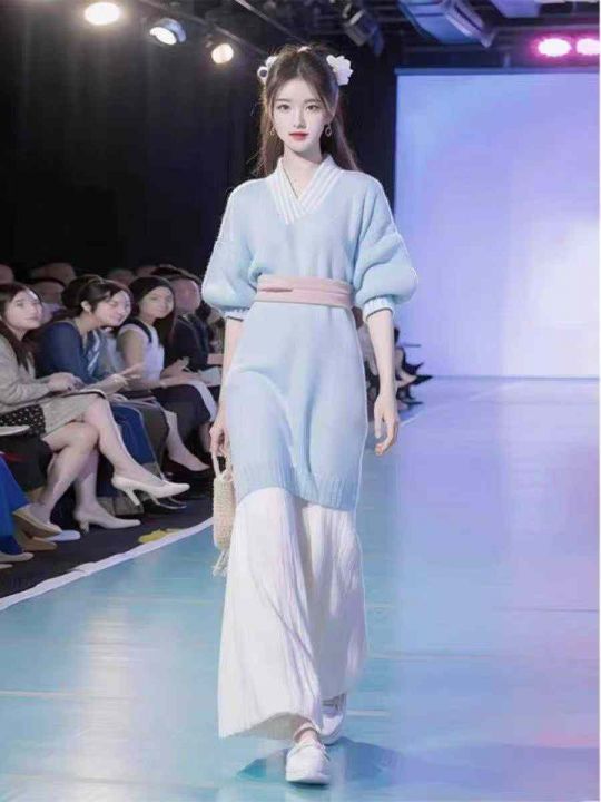 秋冬新款新中式慵懒风汉元素禅意国风加厚中长款毛衣连...
