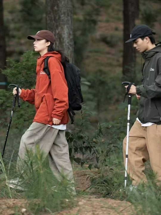 户外登山运动机能风双层连帽男女款冲锋衣外套二个整款...