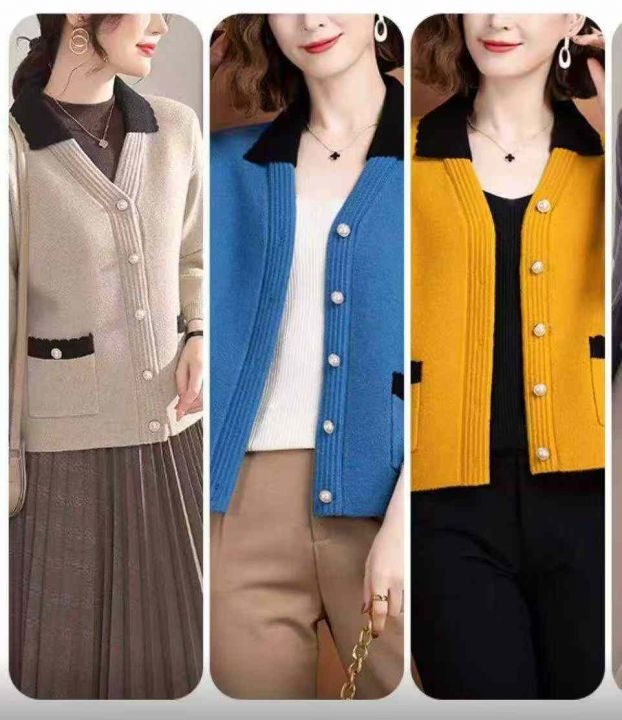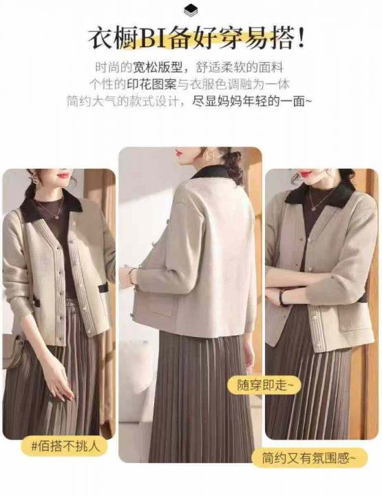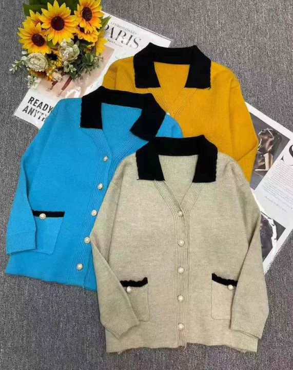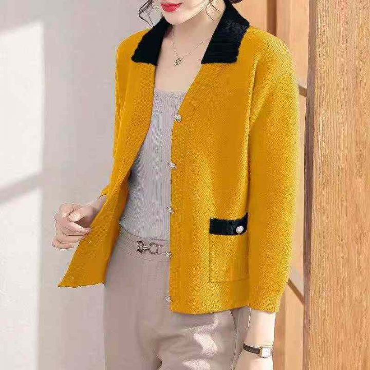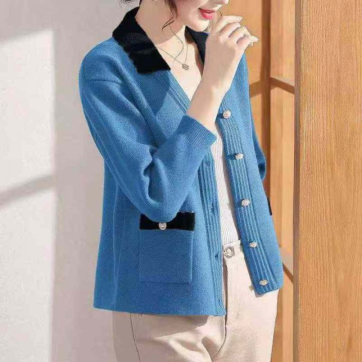 早秋新款小香风撞色翻领温柔风减龄百搭宽松显瘦毛衣开...