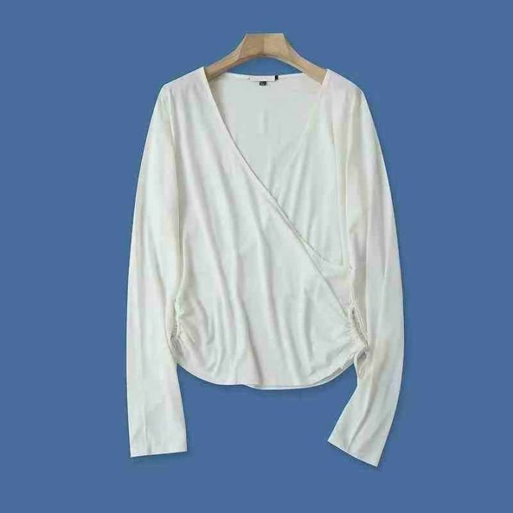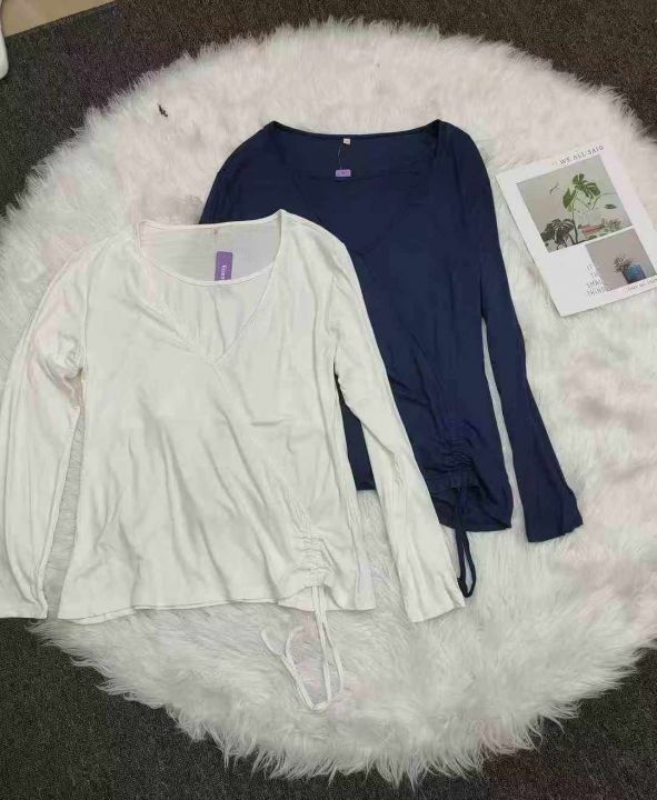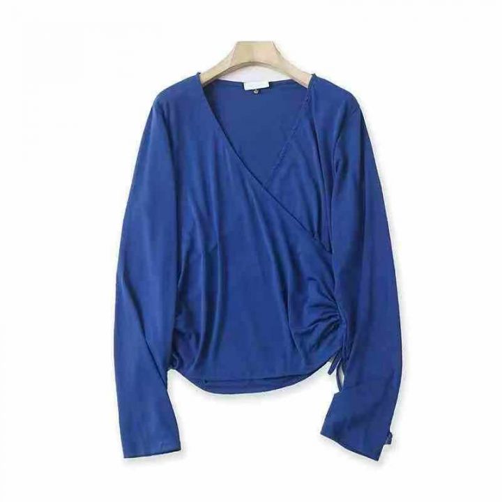 春夏新款外贸女装青春时尚宽松交叉V领套头长袖纯色抽绳T恤,独立包装带吊牌,M-XL,270件左右,全清6.9分货+1