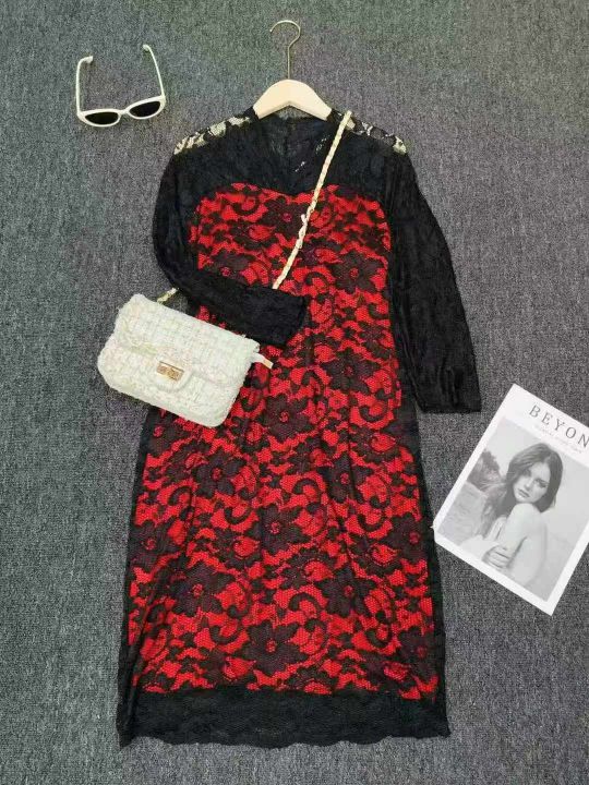 [啤酒]新款法式复古镂空蕾丝女连衣裙,独立包装,1500件,码数S-Xl,全清5.8分货➕1