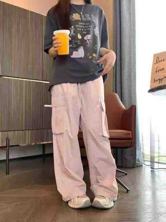美式工装裤女春秋季新款高腰宽松显瘦百搭阔腿休闲裤,单款,图片色,独立包...