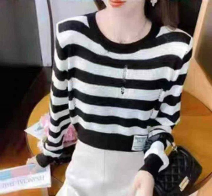 早秋新款设计款撞色条纹圆领长袖针织衫,独立包装,2款多色(一个有标一个没有),均码面料柔软舒适,黑色多一点,1300件,全清5.9元超低价秒杀!分货加一!