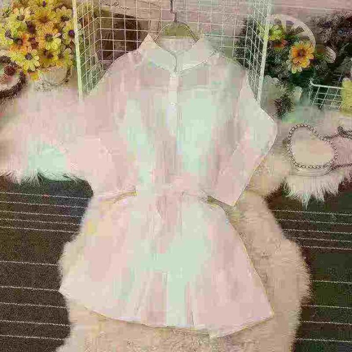 【两件套】镂空薄纱短裙收腰甜美两件套吊带衫欧根纱连衣裙上衣