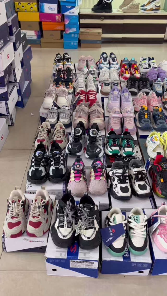 品牌儿童运动鞋中大童,基本都是哈比熊,德尔惠,巴布豆。全部都是运动鞋,...