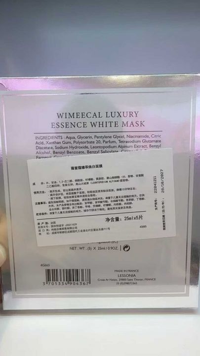 法国进口−薇蜜蔻臻亮白面膜箱规:88日期:2027年10月...