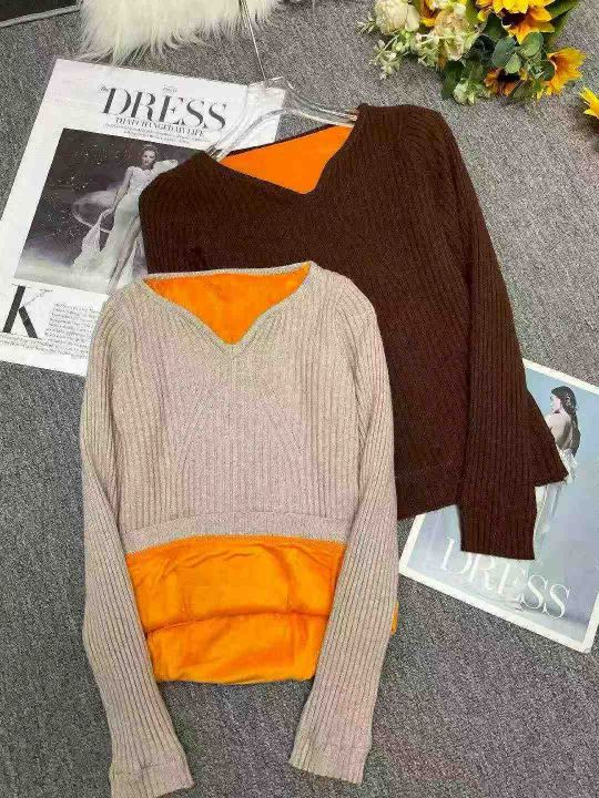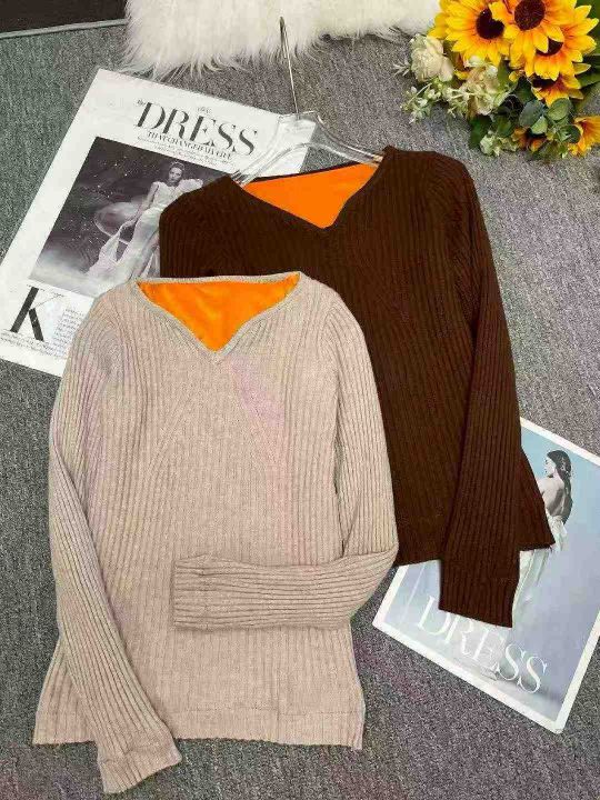 冬季新款加绒加厚美拉德色系V领坑条包芯纱套头毛衣,独立包装,均码面料软糯厚实弹力大,432件,全清6.9元超低价秒杀!分货加一!