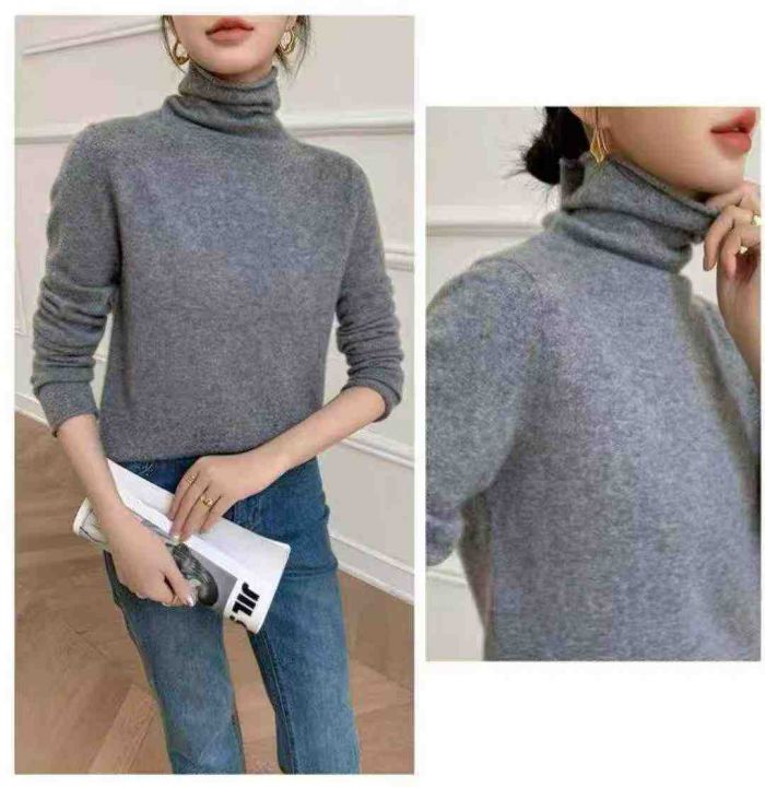 秋冬新款韩系宽松净版简约高领包芯纱套头毛衣,独立包...
