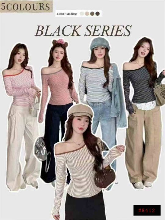 秋冬新款性感辣妹设计款撞色条纹长袖显瘦包芯纱针织套头毛衣,独立包装,单...