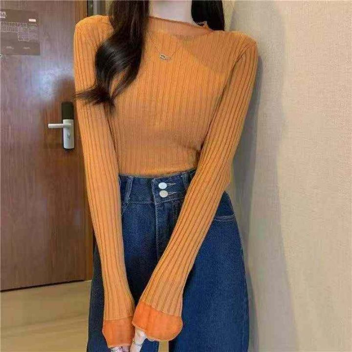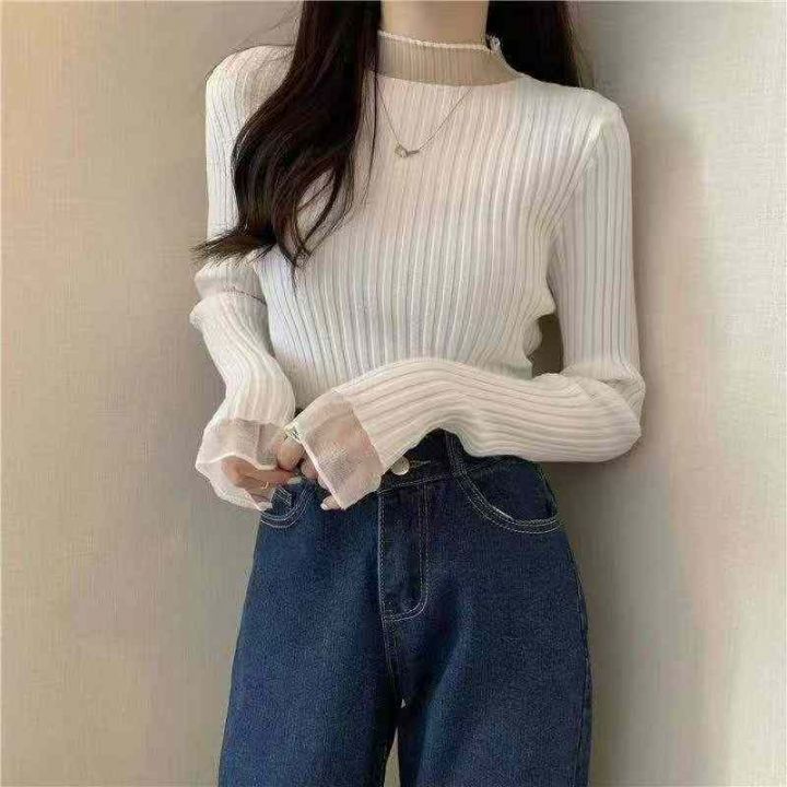 秋季新款蕾丝网纱拼接弹力修身显瘦洋气包芯纱打底外穿套头毛衣,独立包装,面料软糯舒适弹力大,750件,全清5.9元超低价秒杀!分货加一!