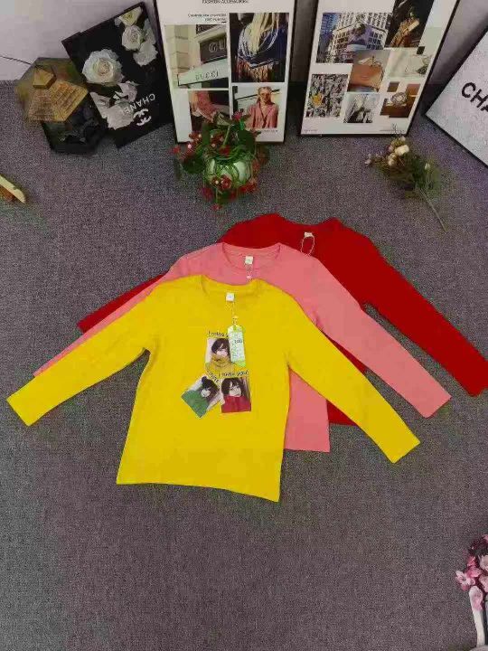 童装纯棉女春秋百搭印花长袖,数量1500件左右,尺码110--160,整款三个色,纯棉包边,独立包装带吊牌,货品干净整洁
