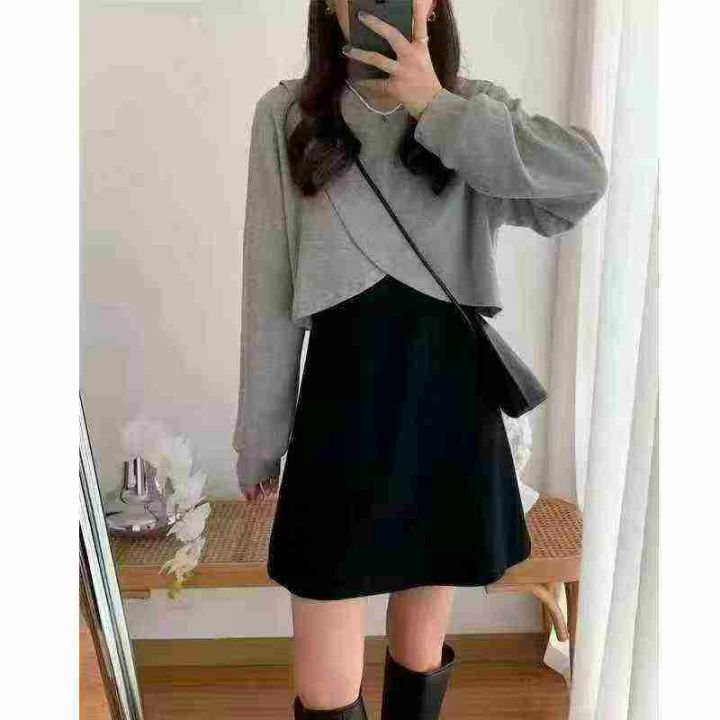 新款潮牌格子假两件长袖T恤男高街复古宽松圆领青少年体恤上衣男,数量3400...