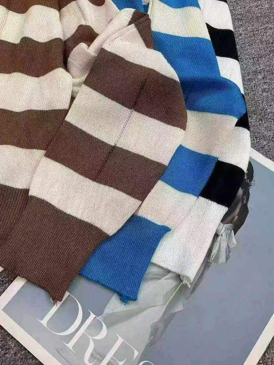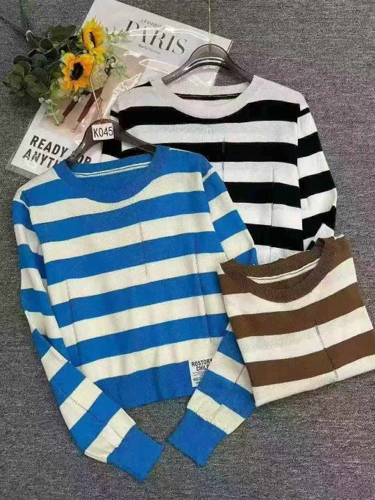 早秋新款设计款撞色条纹圆领长袖针织衫,独立包装,2款多色(一个有标一个没有),均码面料柔软舒适,黑色多一点,1300件,全清5.9元超低价秒杀!分货加一!