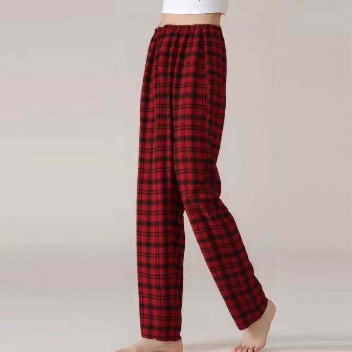外贸格子花裤宽松高级简约女士家居睡裤百搭可外穿,独...