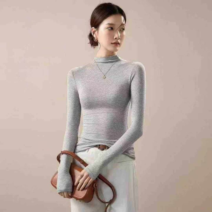 上新全清:7.8一件纯色弹力半高领万能内搭长袖上衣,[...