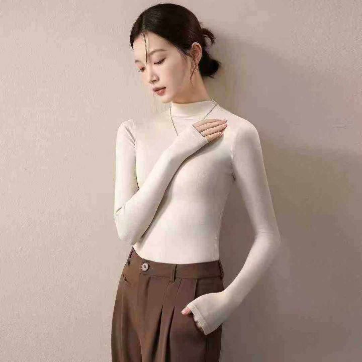 纯色弹力半高领万能内搭长袖上衣,[爱心]255件左右,均码,穿80-140斤,万佳档口货,原包装️无瑕疵,[666]实体店品质,分货加一